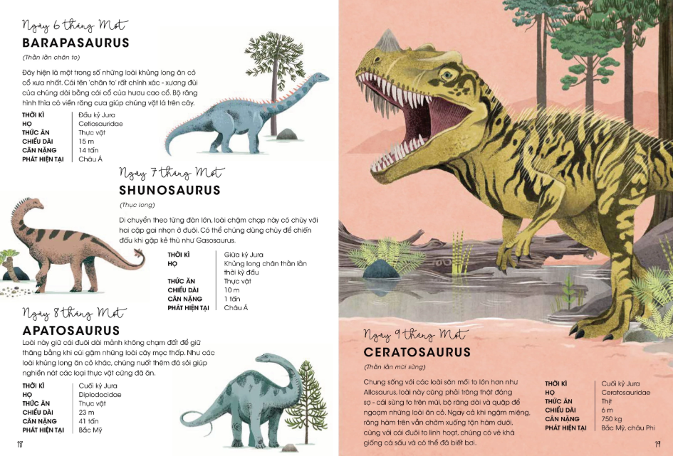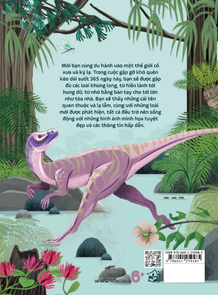 Cuốn sách ‘365 ngày khủng long’ mời bạn cùng du hành vào một thế giới cổ xưa và kỳ lạ. Trong cuộc gặp gỡ khó quên kéo dài suốt 365 ngày này, bạn sẽ được gặp đủ các loài khủng long, từ hiền lành tới hung dữ, từ nhỏ bằng bàn tay cho tới lớn như tòa nhà. Bạn sẽ thấy những cái tên quen thuộc và lạ lẫm, cùng với những loài mới được phát hiện, tất cả đều trở nên sống động với những hình ảnh minh họa tuyệt đẹp và các thông tin hấp dẫn.